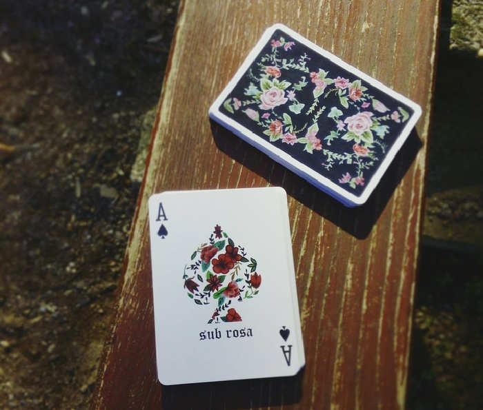 For the faces, we have decided to stick with the familiar and brilliantly designed standard faces that we all love but with a touch of our style. The Jokers are two identical beautifully hand painted watercolor red roses, the pips have been redone with a watercolor style and the same texture is applied to the court cards.