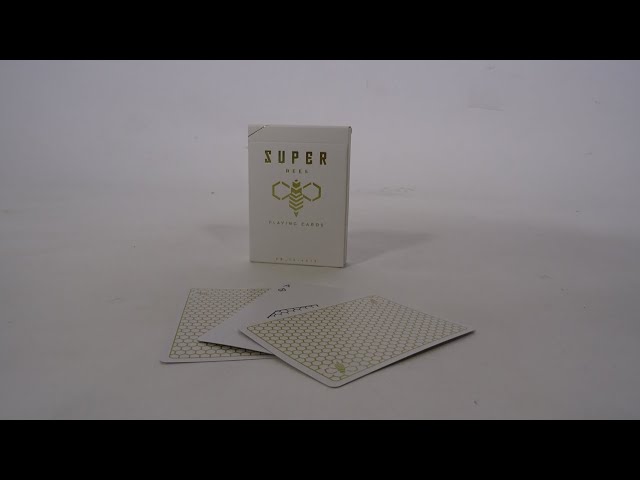 Gold backs share the same hexagonal design made infamous by the Killer Bee deck, while the box is a premium stock, ivory white with gold foil detail.