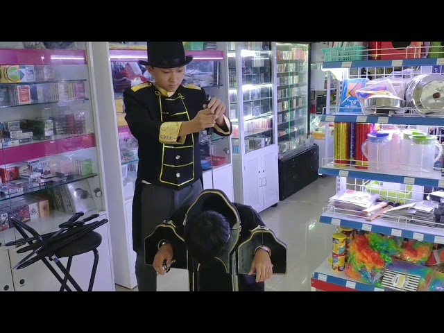 With this item, the magician will use three swords to pierce through the assistant’s neck and arms, especially the assistant will be one of the audience below.