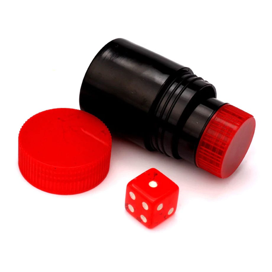 Two containers with screwed on caps and a dice is given out to the audience for inspection. They are then ask to place a face of the dice face up in the smaller container and screw tight the cover. This container is then placed into the larger container and the cap is screwed as well. All these are done while the magician’s back is turned away.