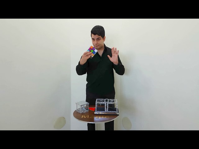 First you show two glassy boxes to the audience; one contains what looks to be a multicolored Rubik’s Cube. You remove this cube, place it inside the other glassy box and, in an instant, the cube changes into two red and yellow balls! The first box is shown to still be empty. However, in the blink of an eye, the cube magically reappears inside that first box.