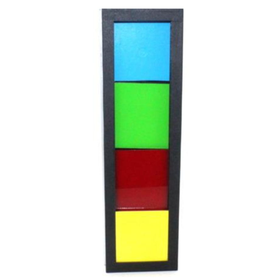 Show 4 separate black dice. Then, you show a quite empty cover and cover the dice. Then, you place a colorful puzzle with four different colors on the side of the cover. Remove the cover and, magically, all the black dice have changed to the colors of puzzle in the exact same order! Now you have some fun – replace the colorful cover, and move all the colors to the bottom, leaving only one color showing. When you again remove the cover, all the single-color dice have changed into to one die of that same color.
