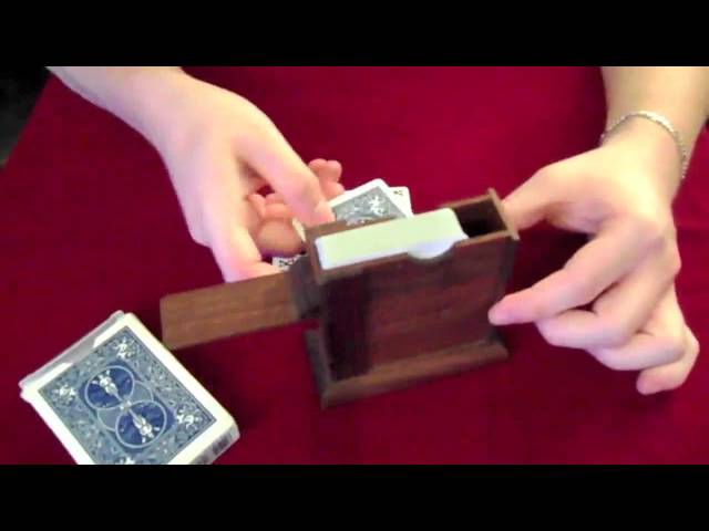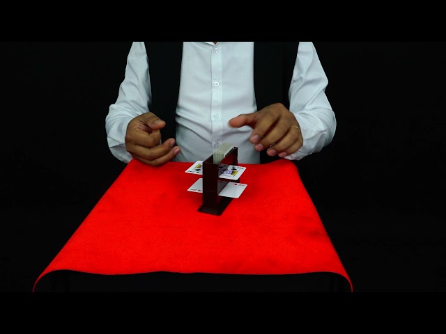 This is another of the umpteen variations of Robert Harbin’s famous Zig Zag Lady, performed with a full deck of cards. A full deck of cards is displayed, being fanned or ribbon spread to show it is a complete deck. The deck is put into a miniature cabinet, like the one used for the famous Zig Zag Lady illusion. Two of the cards are now removed from the deck, and passed through two slots in the cabinet, apparently cutting the deck in three.