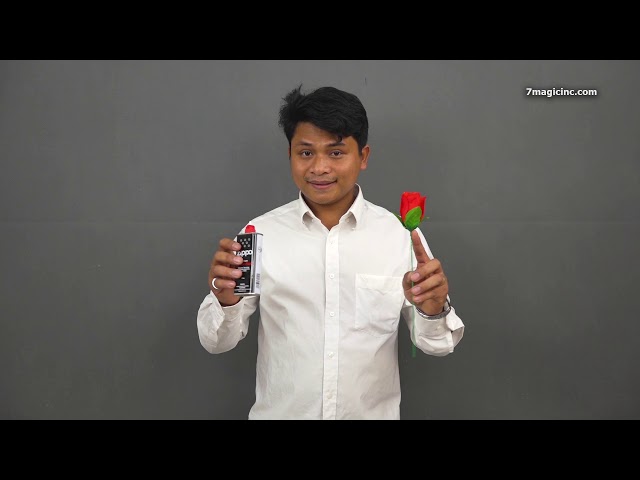 At the first time, you pull down the rose and hide it in the palm of your hand.